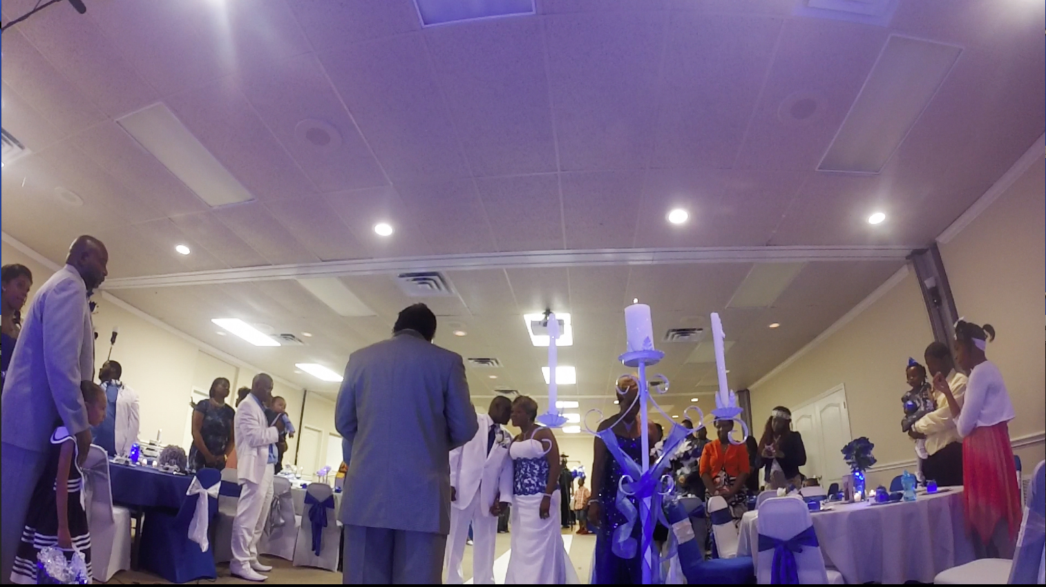 I set it up so that his camera would be the face / close up camera. I put my Canon DSLR behind them to be the master shot camera. I hid my go pro on the pedestal behind the unity candles.