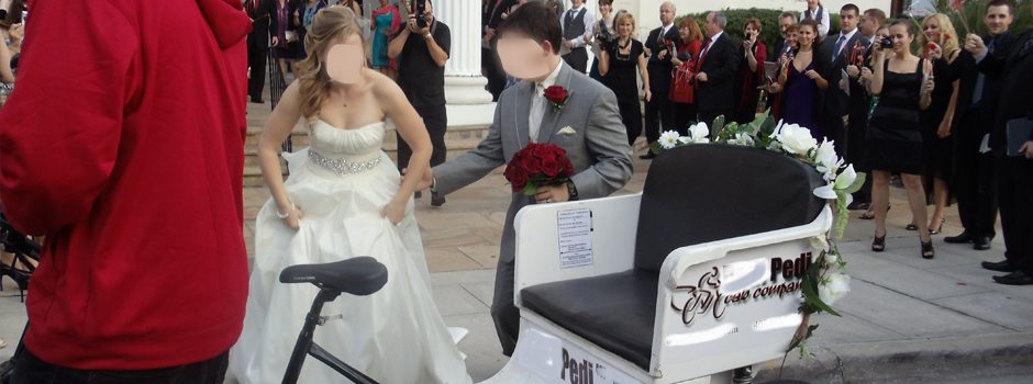 (Note this would work best if your wedding is near downtown. Pedicabs can go a lot further than most people think but if your event is significantly far away from downtown this entails further planning and costs).
